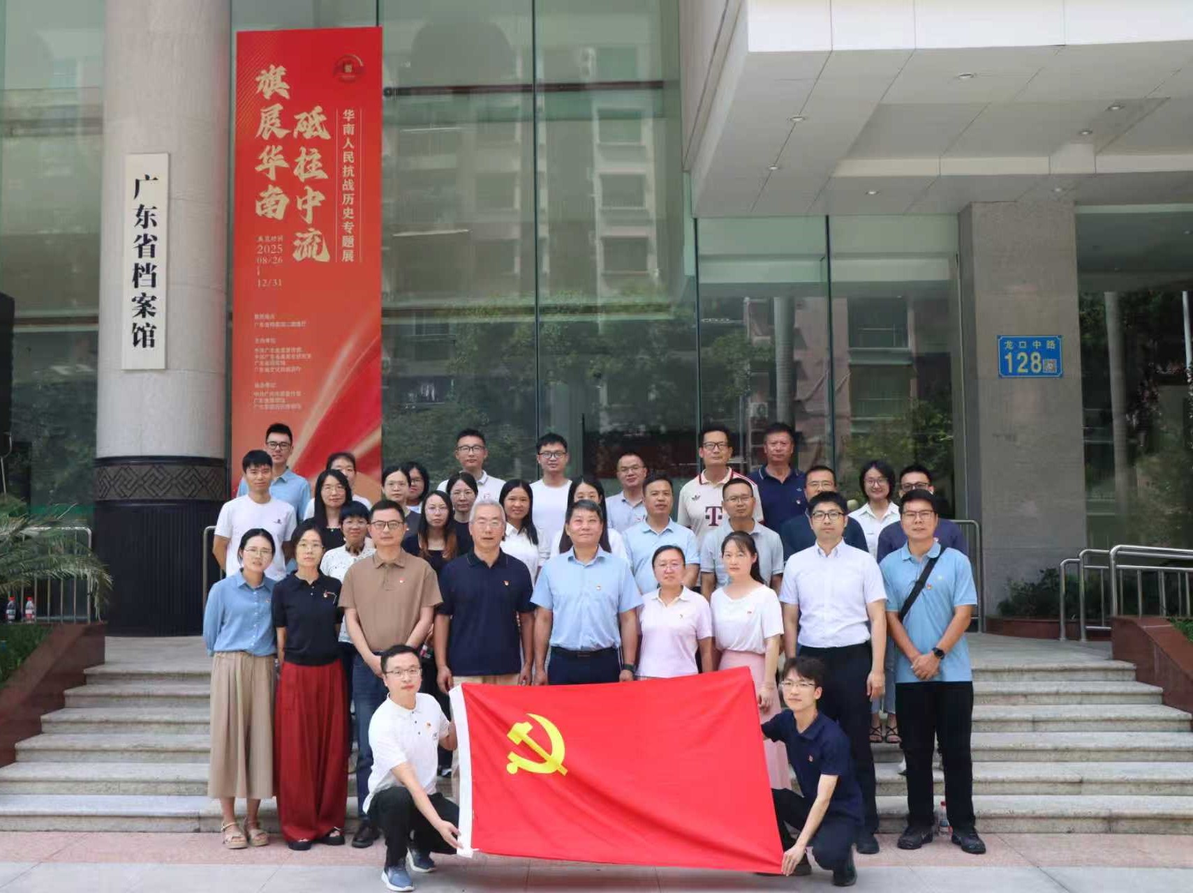 為紀念中國人民抗日戰(zhàn)爭暨世界反法西斯戰(zhàn)爭勝利80周年,鞏固黨史學習教育成果,弘揚偉大抗戰(zhàn)精神,增強黨組織的凝聚力和戰(zhàn)斗力,8月29日,技術支撐支部與譜系設施建設支部聯(lián)合開展主題黨日,組織30余名黨員及入黨積極分子赴廣東省檔案館,參觀“旗展華南 砥柱中流——華南人民抗戰(zhàn)歷史專題展”,黨委書記張鴻翔以普通黨員身份參加。