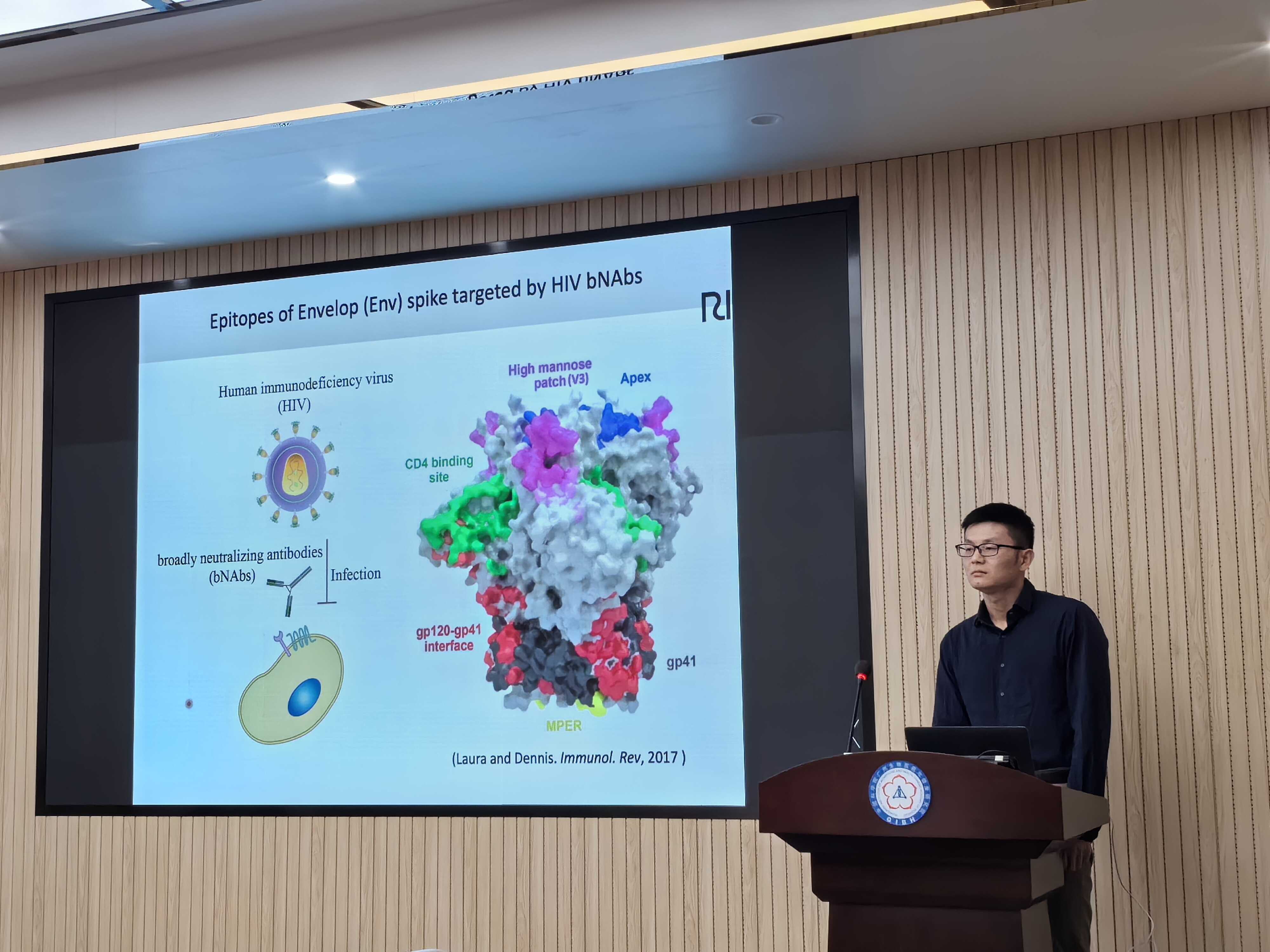 在報(bào)告中,謝振飛博士介紹通過(guò)使用人源化免疫球蛋白基因敲入小鼠模型,發(fā)現(xiàn)靶向(GT)誘導(dǎo)蛋白三聚體免疫原N332-GT5能活化V3-聚糖靶向bnAb BG18的種系前體細(xì)胞,并且由 N332-GT5激活的前體B 細(xì)胞可以通過(guò)兩種新型蛋白加強(qiáng)免疫原中的任何一種有效加強(qiáng),這兩種新型蛋白免疫原旨在與脫靶 V1 結(jié)合反應(yīng)具有最小的交叉反應(yīng)性。以信使 RNA 脂質(zhì)納米顆粒 (mRNA-LNPs) 形式遞送初免和加強(qiáng)免疫原可產(chǎn)生持久的 GC、體細(xì)胞超突變和親和力成熟,可能是 HIV 疫苗開(kāi)發(fā)的有效工具。這些研究成果開(kāi)辟了開(kāi)發(fā)有效HIV疫苗的新策略。