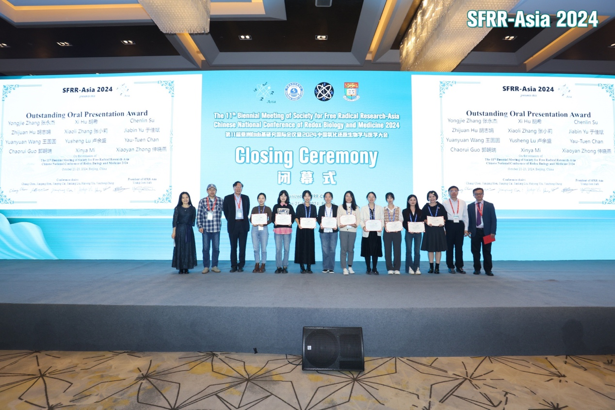 10月21日,第十一屆亞洲自由基研究國際會議暨2024中國氧化還原生物學(xué)與醫(yī)學(xué)大會在北京召開,此次大會頒發(fā)了“SFRR-Asia 亞洲青年研究員獎(SFRR Asia Young Investigator Award,YIA)”以及“優(yōu)秀口頭報告獎(Outstanding Oral Presentation Award)”等獎項(xiàng)。