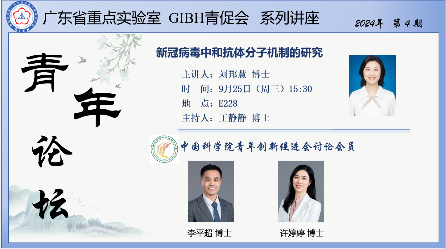 2024年9月25日廣東省重點實驗室GIBH青促會系列講座(2024年第4期):新冠病毒中和抗體分子機制的研究