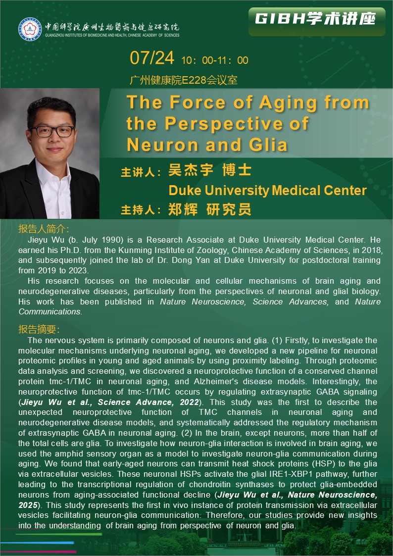2025年7月24日學(xué)術(shù)講座: The Force of Aging from the Perspective of Neuron and Glia