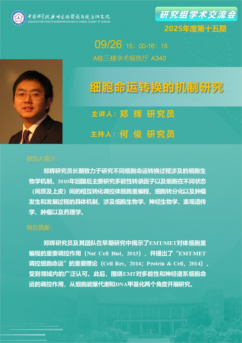 2025年9月26日研究組學術交流會(2025年度第十五期):細胞命運轉換的機制研究